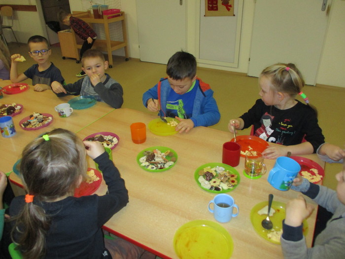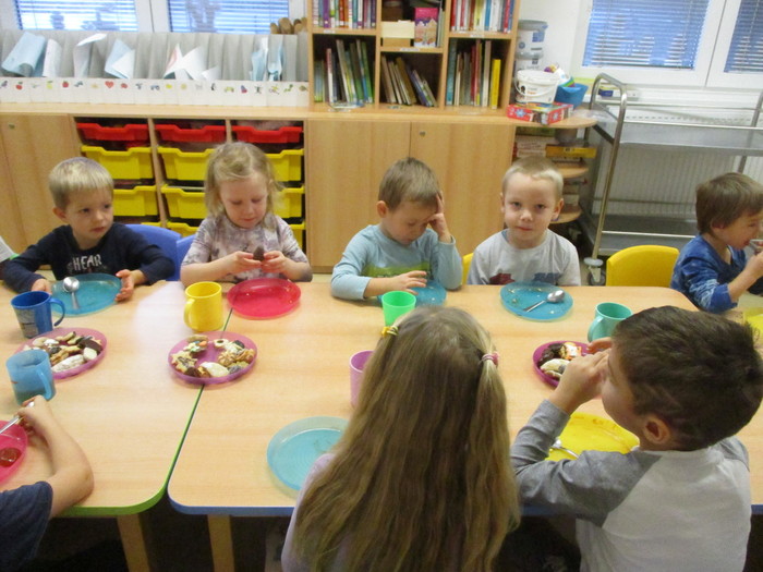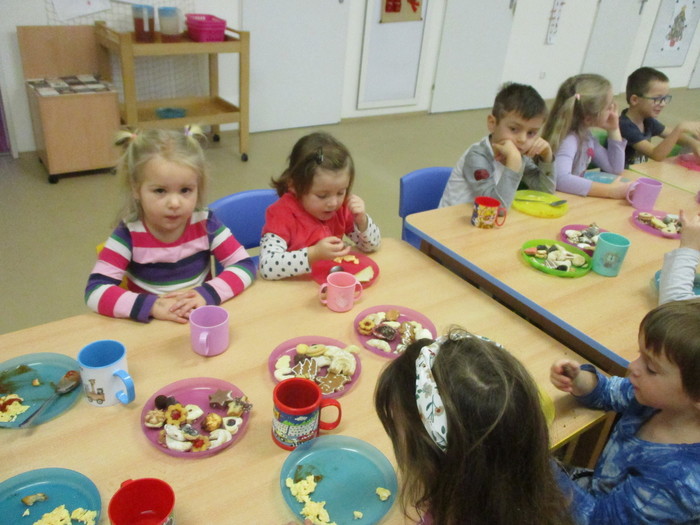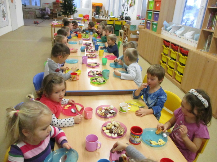Předvánoční čas je v mateřské škole vždy plný událostí, radostného očekávání a těšení. Nejdříve jsme otevřeli náš malý školní jarmark s výrobky s vánoční tématikou. Po nadílce od Mikuláše jsme se pustili s velkým odhodláním do nacvičování programu na vystoupení. Předvánoční setkání s rodiči a přáteli školy jsme letos kromě vystoupení obohatili o společné zdobení stromečku. Hned druhý den nás pod stromečkem překvapily dárky, alespoň si ještě stihneme s novými hračkami pohrát. K završení Vánoc v mateřské škole již tradičně patří slavnostní svačina s cukrovím. Vše přejeme hezké Vánoce.