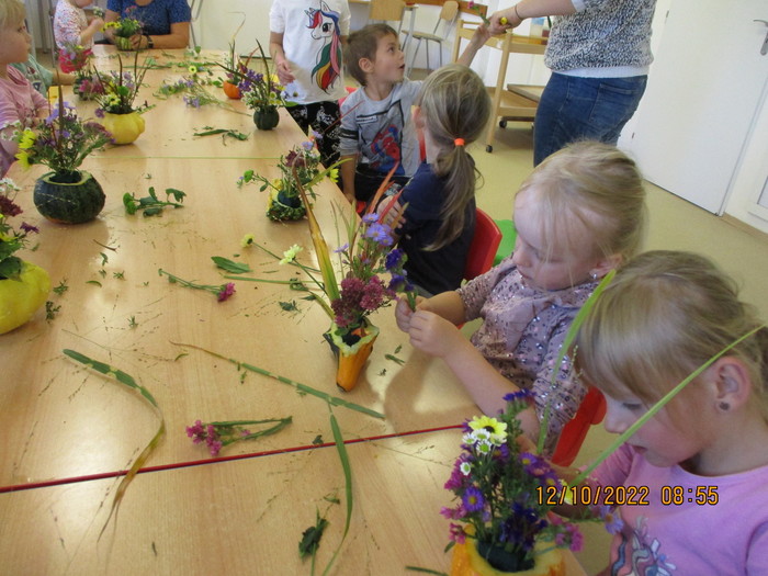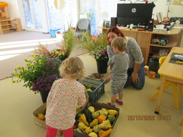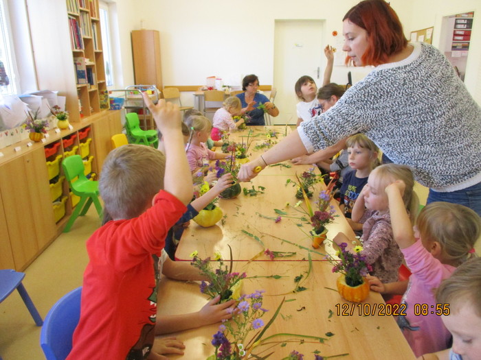 Ve středu 12. 10. 2022 přišla za dětmi do mateřské školy maminka Aničky paní Schindlerová. Přinesla spoustu malých dýní a aranžovací materiál a spolu s dětmi připravila krásné podzimní překvapení, které si děti odpoledne odnesly domů.