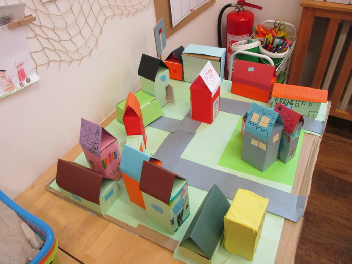 V týdnu od 26. února v mateřské škole si povídáme na téma "Rodina - doma". Děti dostaly za úkol si přinést menší krabičky a společně s učitelkami a praktikantkou Viktorkou si vyrobily své domečky. Z domečků si stavěly vesnice, městečka i města. Až si s nimi dost pohrajeme, děti si domečky odnesou domů.