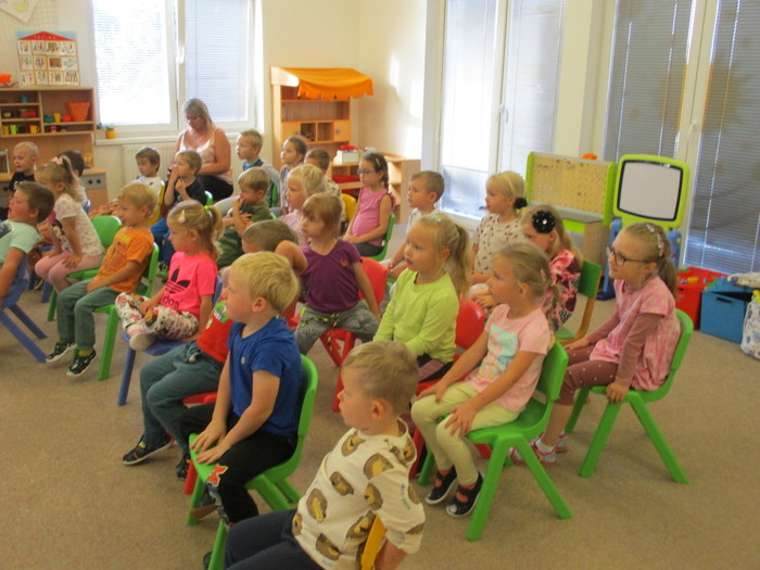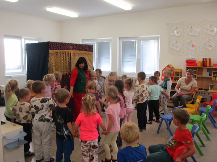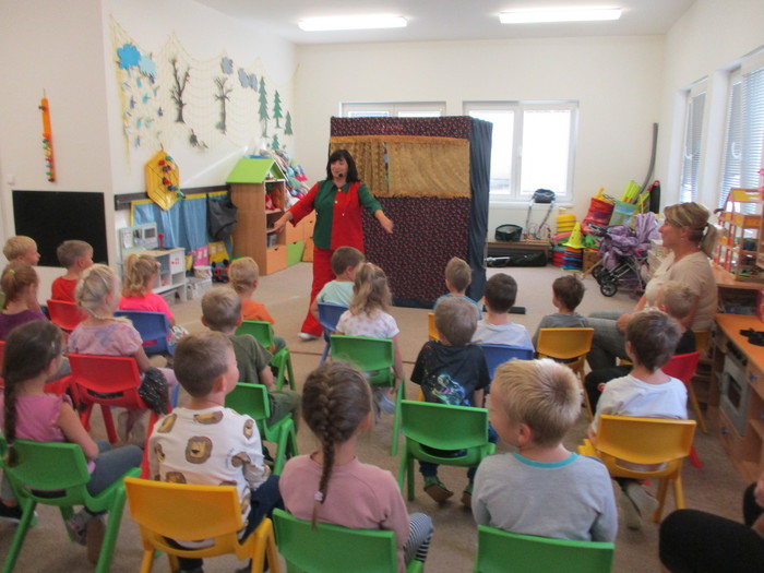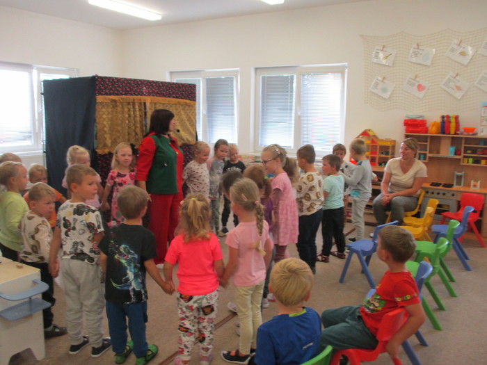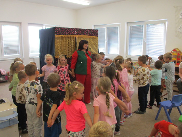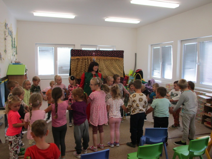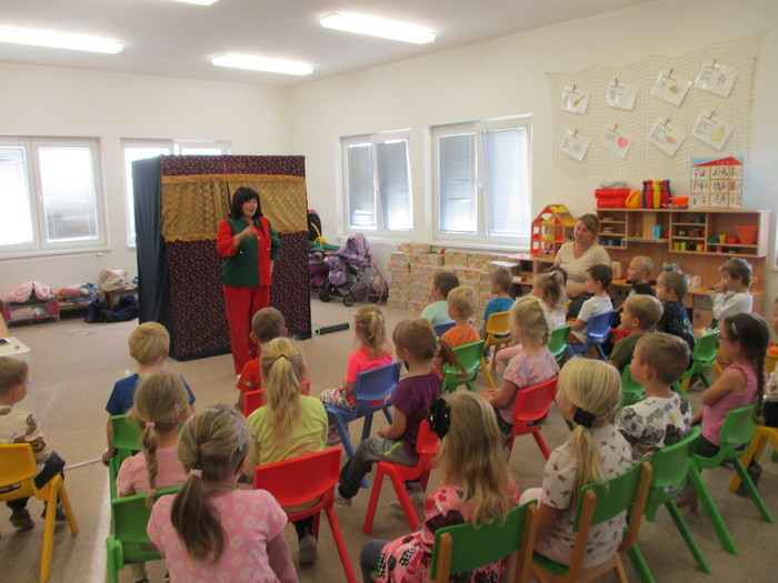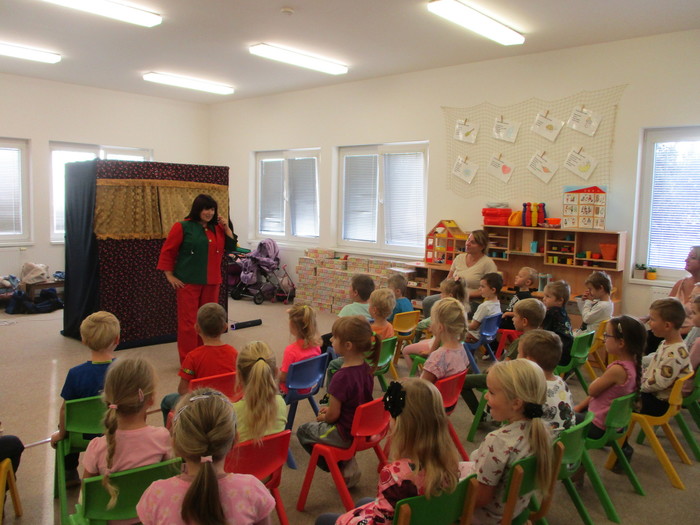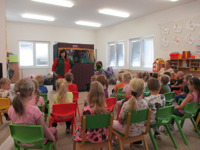 V pátek 18. 9. 2025 přijelo za dětmi divadélko Ivany Lhotákové s pohádkou "Jak si veverka Zrzečka dělala zásoby na zimu". Divadélko byl vlastně úvod k dalšímu integrovanému bloku "Podzim je tu", protože o podzimu si budeme s dětmi nyní hodně povídat.