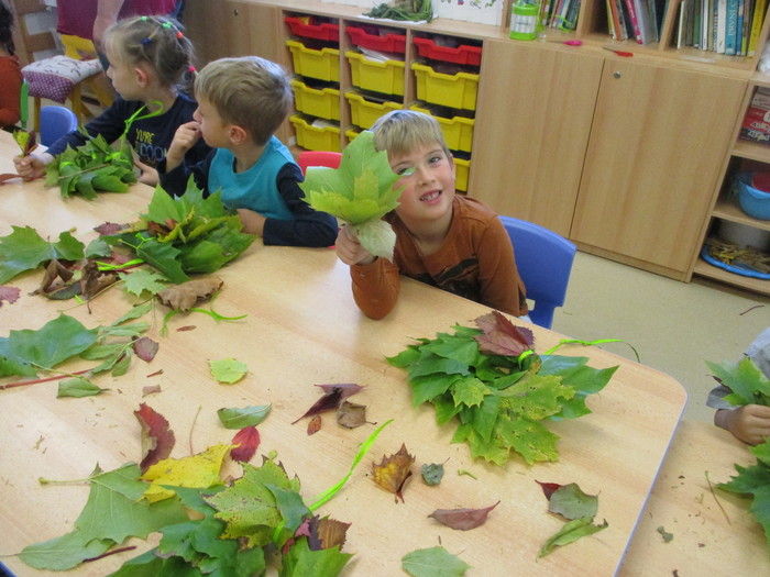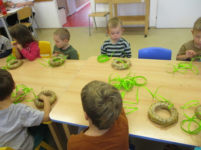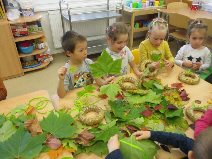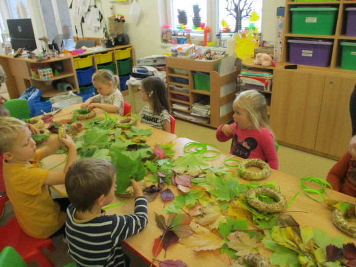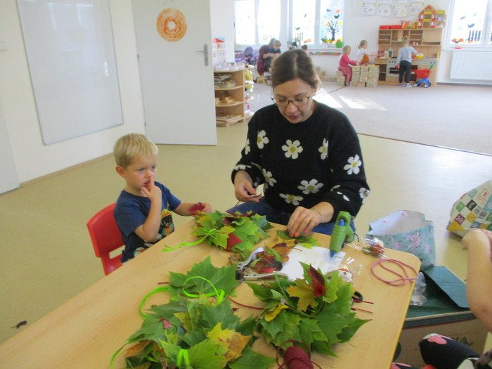 V úterý 17. 10. 2023 přišla za dětmi do mateřské školy paní Terezka Schindlerová. Přinesla dětem slaměné věnečky, které jsme společně ozdobili listím a dalšími přízdobami. Děti si své výrobky odnesly domů, aby se z podzimní krásy mohly radovat se svými rodiči.
