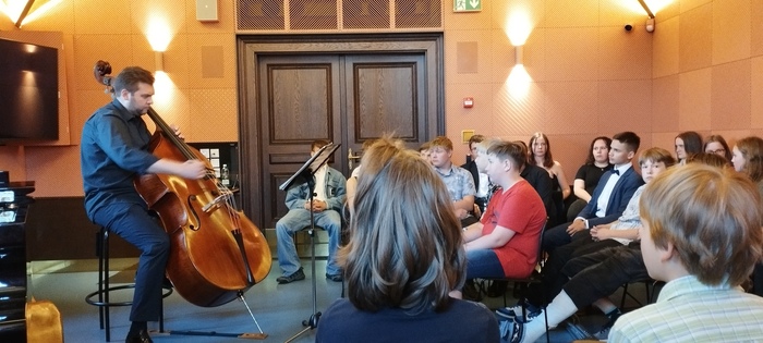 9. května se skupina žáků z druhého stupně vydala do pražského Rudolfina na pořad Dopoledne s filharmoniky: Hudba v base. Slyšeli jsme ukázky z děl slavných skladatelů, filmovou hudbu i napodobení různých zvuků z přírody. To vše na basu s doprovodem piána. Žáci si mohli prohlédnout krásné starožitné hudební nástroje a zkusit si přejet struny smyčcem. Představení se všem moc líbilo. Na procházce Prahou jsme viděli orloj na Staroměstské radnici, nábřeží Vltavy, Karlův most, Pražský hrad a na závěr jsme si odpočinuli ve Valdštejnské zahradě.
